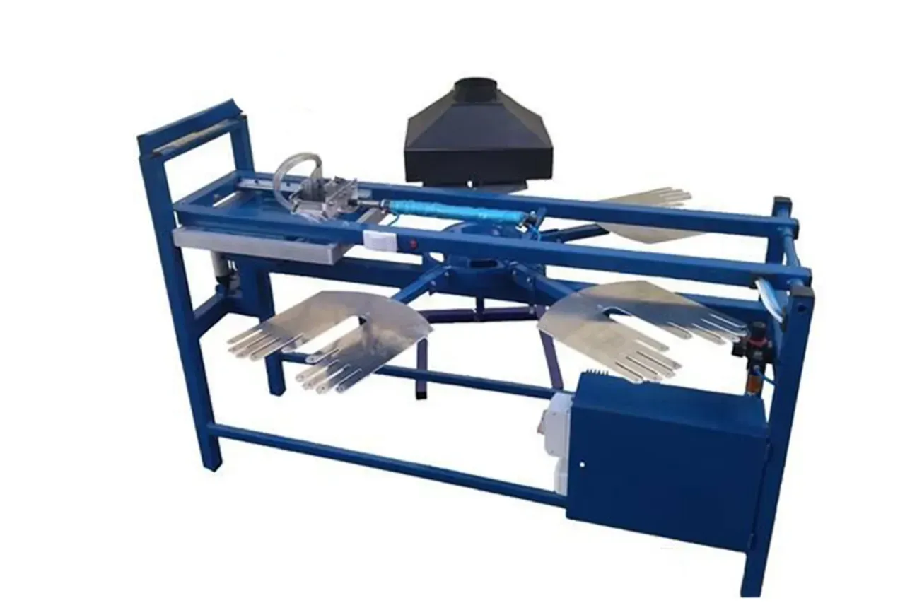 Станок ручной по нанесению ПВХ точек на хб перчатки. Диаметр точек 2-3мм, толщина 1.5мм. Преимущества нашего оборудования: - собственное производство; - производительность до 800 пар в сутки; - 1 зона нанесения пластизоли; - 1 сушильная зона; - сушка тэнами. Энергопотребление: 220В, 3кВт/час
